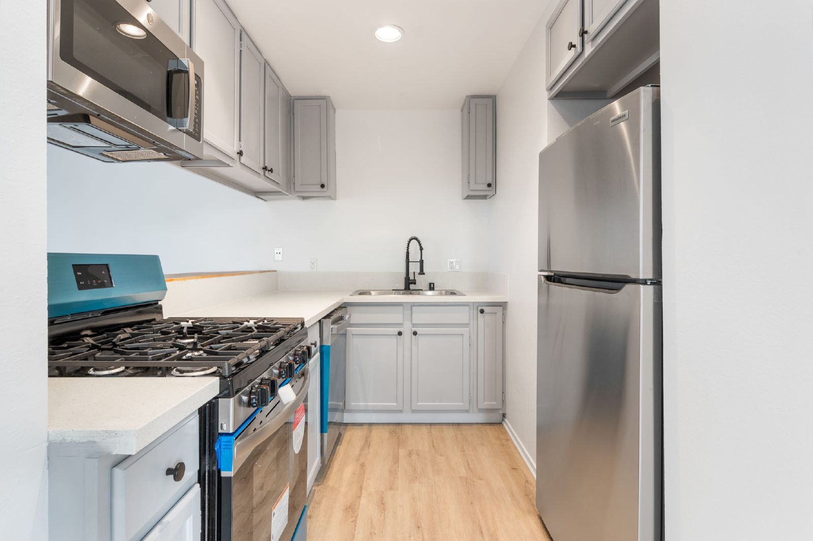 This beautifully presented two-bedroom, two-and-a-half-bathroom end-unit apartment at 824 Centinela Ave was thoughtfully renovated approximately 12 months ago and continues to offer a modern, comfortable living space. As an end unit, the home is filled with natural light, highlighting the quality finishes and well-maintained interior throughout.